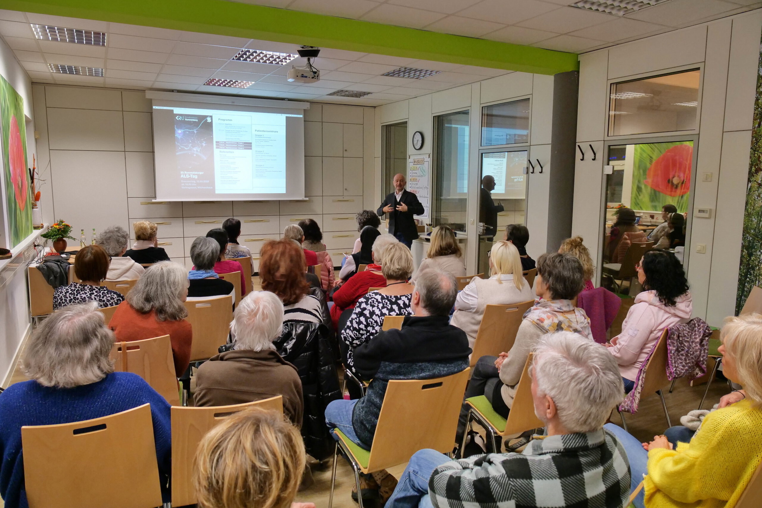 Ein voll besetztes Haus traf Dr. Martin Winterholler im Hospizverein Landkreis Roth an, als er über das tückische und schwerwiegende Krankheitsbild „ALS“ referierte. ALS steht für „Amyotrophe Lateralsklerose“ und ist eine Krankheit, die Nerven und Muskeln befällt und über kurz oder lang zum Tode führt. Dr. Winterholler ist Neurologe im Krankenhaus Rummelsberg und seit vielen Jahren mit diesem Krankheitsbild befasst – ein ausgewiesener Spezialist auf diesem Gebiet.