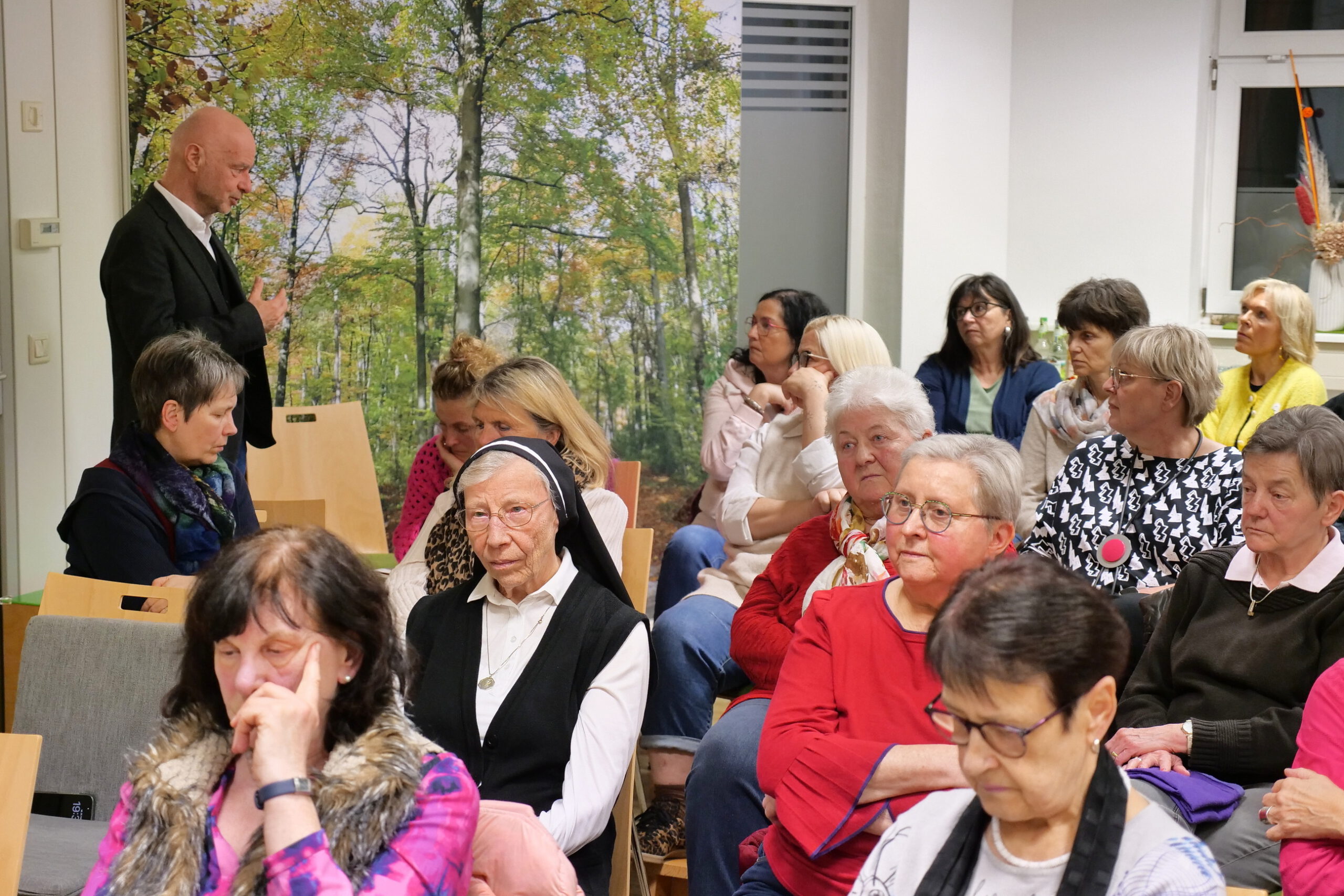 Im Anschluss zum Vortrag konnten die Hospizbegleiter von eigenen Erfahrungen in der Sterbebegleitung von Patienten mit diesem Krankheitsbild berichten und Fragen an Dr. Winterholler richten, die dieser in sehr persönlicher und nahbarer Weise beantwortete.